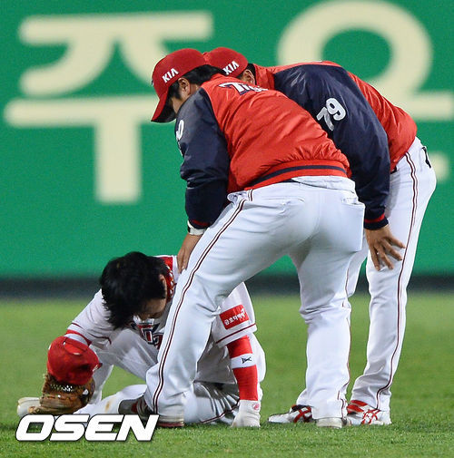 9회에서는 2사후 이승엽의 뜬공이 좌익수와 유격수 사이에 떨어지면서 2루타를 만들어주었다. 이 과정에서 김선빈이 쇄도하는 좌익수 신종길과 부딪혀 그라운드에 쓰러졌고 교체되었다. 김선빈은 결국 부상 때문에 27일 경기 선발출전 명단에서 제외됐다.