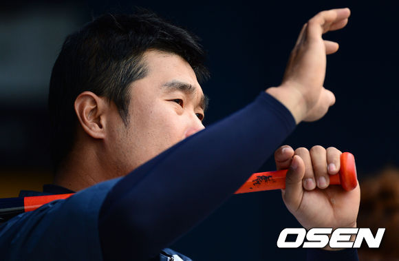 27일 오후 창원 마산야구장에서 열린 2013 한국야쿠르트 세븐프로야구 NC 다이노스와 두산 베어스의 경기, 경기에 앞서 NC 이호준이 취재진과 이야기를 나누고 있다.