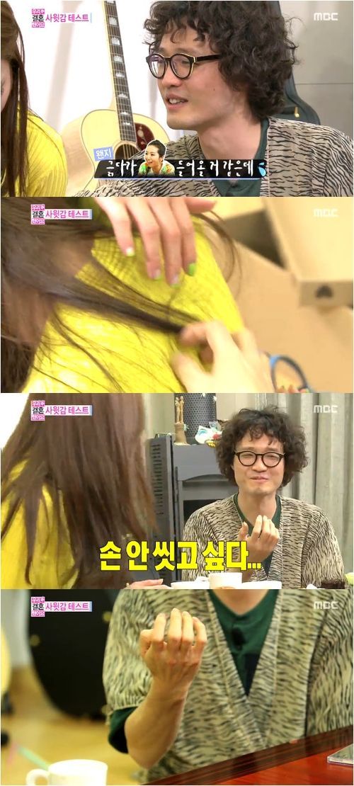 가수 조정치가 이상형으로 꼽았던 강예빈의 등을 긁은 후 손을 씻지 않고 싶다고 너스레를 떨었다.