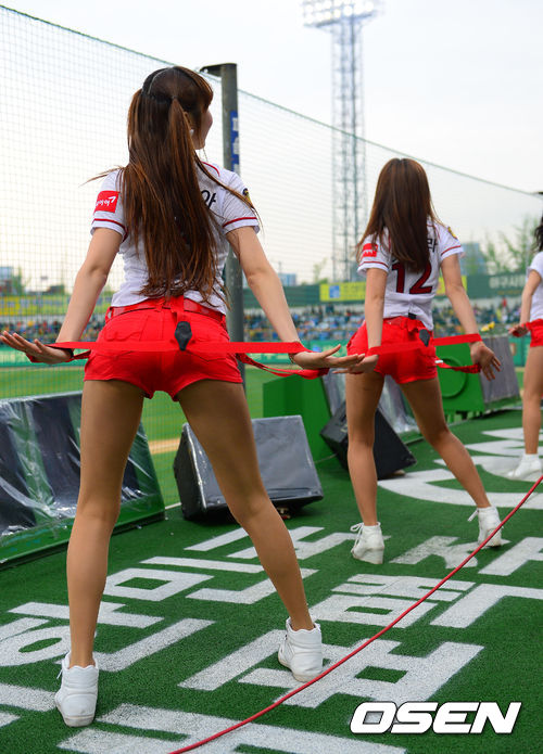 27일 오후 광주 무등구장에서 열린 '2013 한국야쿠르트 세븐 프로야구' KIA 타이거즈와 삼성 라이온즈의 경기, KIA 치어리더가 멋진 공연을 펼치고 있다