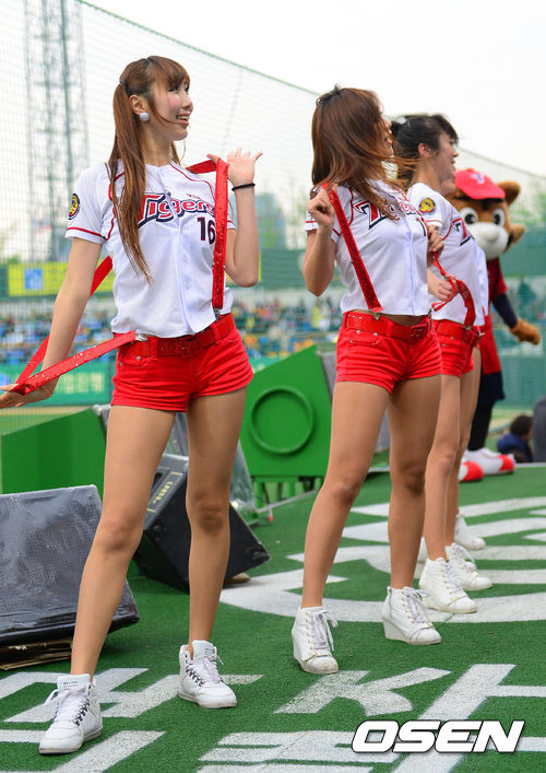 27일 오후 광주 무등구장에서 열린 '2013 한국야쿠르트 세븐 프로야구' KIA 타이거즈와 삼성 라이온즈의 경기, KIA 치어리더가 멋진 공연을 펼치고 있다
