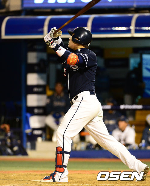 4-4로 팽팽히 맞선 6회초 두산은 선두타자 허경민이 2루 내야안타로 출루하며 포문을 열었다. 이어 양의지가 NC 선발 이태양의 2구째 몸쪽 낮은 코스로 잘 제구된 132km 직구를 걷어올려 좌측 담장을 넘어가는 비거리 115m 투런 홈런으로 연결시켰다. 시즌 5호 홈런으로 팀 내 최다.