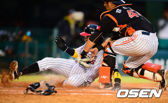 정성훈,'악! 홈에서 태그아웃 당했어!'