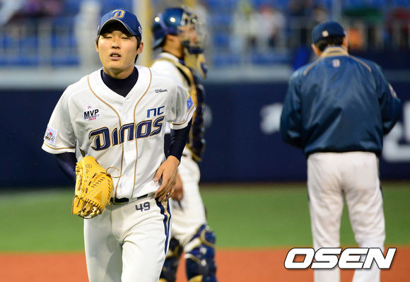 27일 오후 창원 마산야구장에서 열린 2013 한국야쿠르트 세븐프로야구 NC 다이노스와 두산 베어스의 경기, 6회초 1사에서 NC 이태양이 마운드를 내려가고 있다.