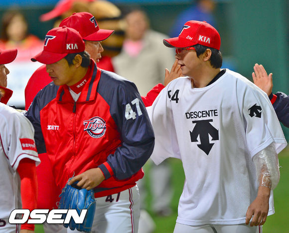 경기종료 후 양현종이 선동렬 감독과 하이파이브를 하고 있다/ soul1014@osen.co.kr