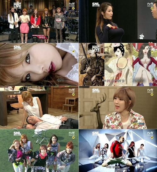 걸그룹 포미닛이 tvN ‘SNL코리아’와 만나 그야말로 훨훨 날아올랐다. 19금과 파격적인 대사와 장면들이 난무했지만, 단순히 19금 유머에서 그치지 않고 풍자와 패러디를 곁들여 아이돌 그룹의 입장을 대변하듯 그들의 애환과 울분을 마음껏 토해냈다는 점에서 합격점을 받았다.