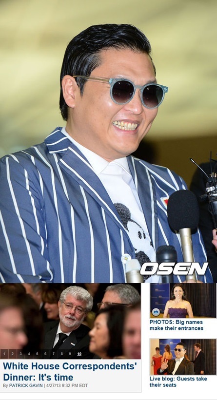 싸이는 28일(한국 시간) 미국 워싱턴 DC에서 열린 백악관 기자단 연례만찬(White House Correspondents' Dinner 2013)에 초청받아 참석했다.