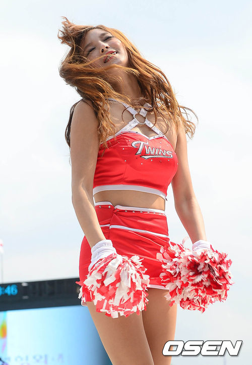 28일 오후 서울 잠실구장에서 열린 '2013 한국야쿠르트 세븐 프로야구' LG 트윈스와 롯데 자이언츠의 경기, 치어리더들이 공연을 펼치고 있다.