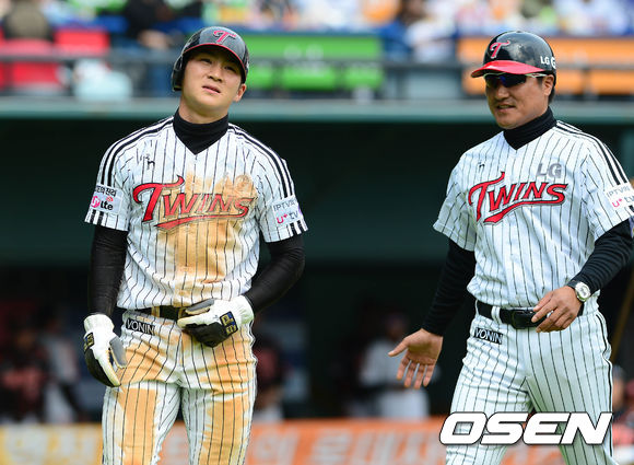 28일 오후 서울 잠실구장에서 열린 '2013 한국야쿠르트 세븐 프로야구' LG 트윈스와 롯데 자이언츠의 경기 5회말 2사 3루 박용택의 타석, 이명우의 폭투로 공이 빠지자 3루주자 오지환이 홈으로 쇄도했으나 아웃당하자 아쉬운 표정을 짓고 있다.