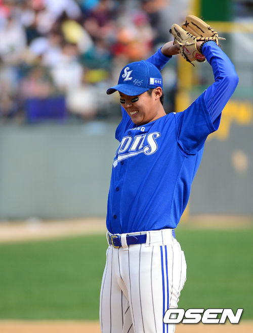 28일 오후 광주 무등야구장에서 열린 2013 한국야쿠르트 세븐프로야구 KIA 타이거즈와 삼성 라이온즈의 경기, 7회말 1사 1루에서 삼성 배영수가 마운드에 내려가기 전 아쉬운 표정을 짓고 있다.