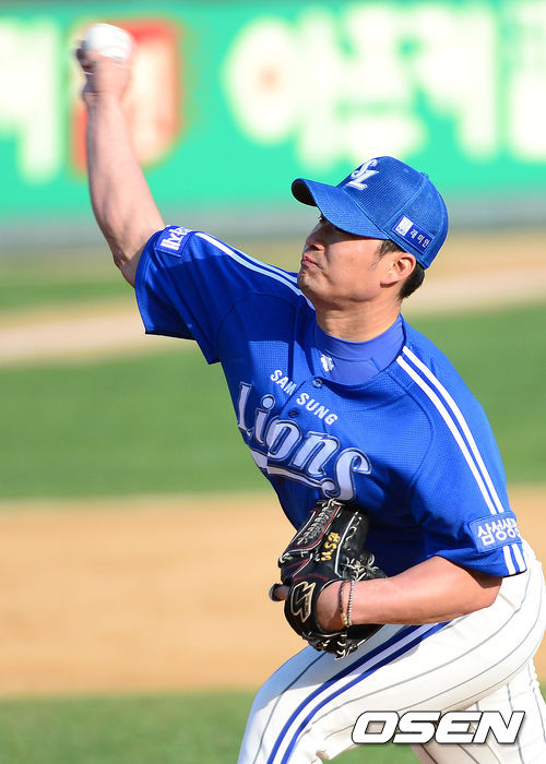 28일 오후 광주 무등야구장에서 열린 2013 한국야쿠르트 세븐프로야구 KIA 타이거즈와 삼성 라이온즈의 경기, 8회말 2사에서 삼성 오승환이 힘차게 공을 던지고 있다.