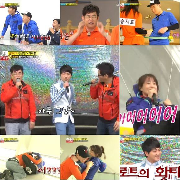28일 방송된 '런닝맨'에서는 두 사람을 비롯해 '전국노래자랑'의 또다른 주인공 배우 김인권이 특별 게스트로 함께 한 가운데, 파랑팀과 빨강팀으로 나뉜 멤버들이 최후의 승자를 가리기 위해 대결을 펼쳤다.