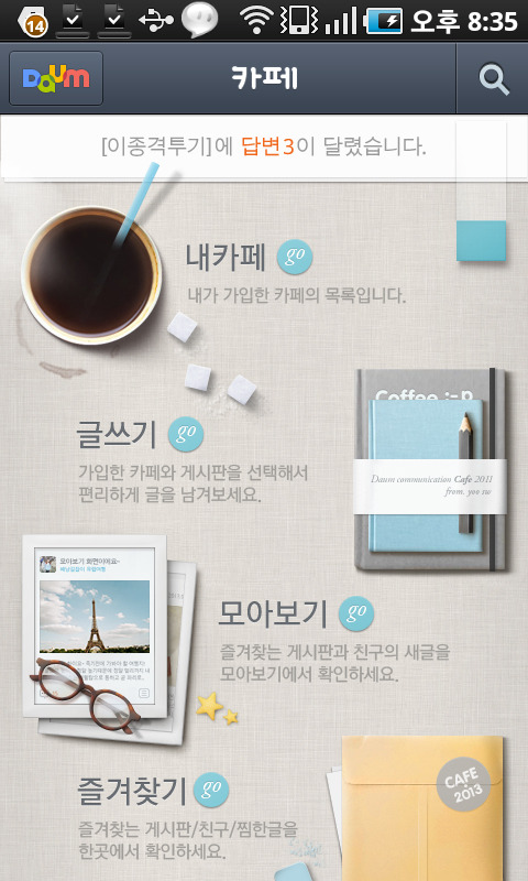 다음 카페서 내 입맛에 맞는 콘텐츠만 간편하게 받아볼 수 있게 됐다.