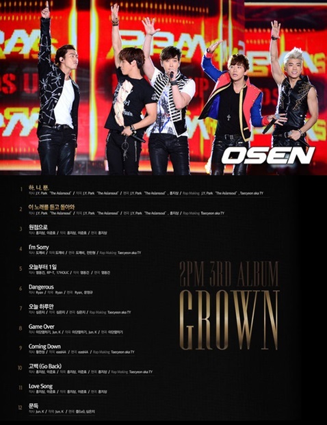 2PM은 29일 오후 2시 공식 홈페이지를 통해 타이틀 곡 명 '그론(GROWN)’과 새 앨범 트랙리스트를 전격 공개하며 컴백 신호탄을 쏘아올렸다.