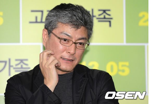 29일 오후 서울 행당동 CGV 왕십리에서 열린 영화 '고령화 가족' 언론시사회에서 송해성 감독이 질문을 듣고 생각을 하고 있다.