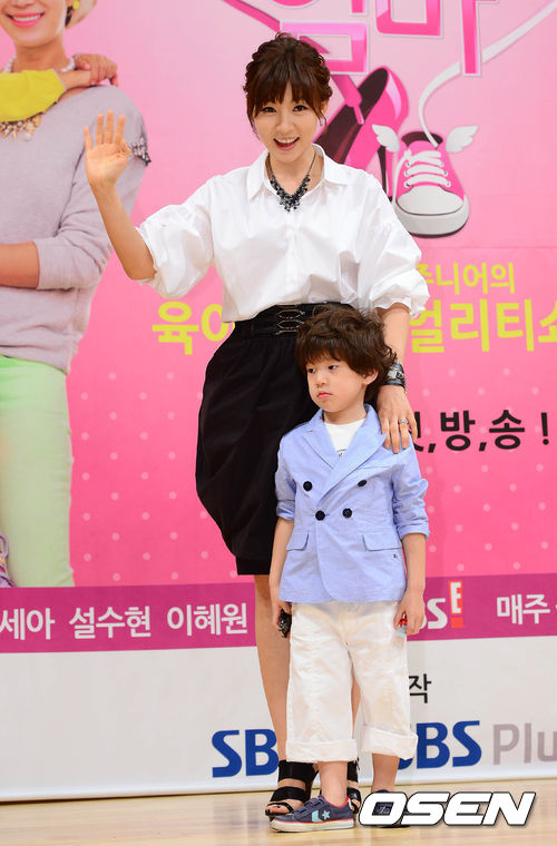 30일 오후 서울 목동 SBS 사옥에서 열린 SBS E! '하이힐을 신고 달리는 엄마' 제작발표회에서 설수현과 아들 이승우 군이 포토타임을 갖고 있다.