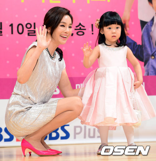30일 오후 서울 목동 SBS 사옥에서 열린 SBS E! '하이힐을 신고 달리는 엄마' 제작발표회에서 김세아가 딸 김예나 양과 포토타임을 갖고 있다.