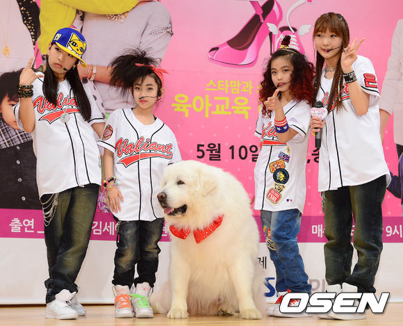 30일 오후 서울 목동 SBS 사옥에서 열린 SBS E! '하이힐을 신고 달리는 엄마' 제작발표회에서 어린이 4인조 아이돌 발리언트와 상근이가 포토타임을 갖고 있다.