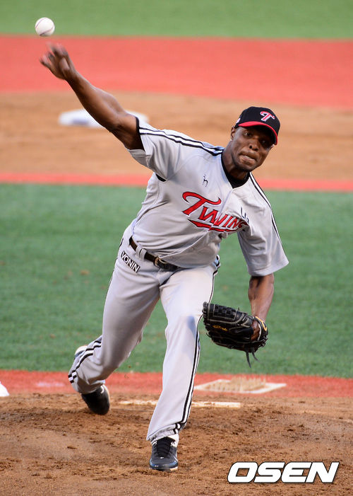 30일 오후 창원 마산구장에서 열린 '2013 한국야쿠르트 세븐 프로야구' NC 다이노스와 LG 트윈스의 경기, 1회말 LG 선발 리즈가 역투하고 있다.