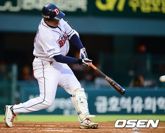 ‘두목곰’ 김동주(37, 두산 베어스)가 수비 도중 오른 팔꿈치 통증으로 호소하며 결국 첫 타석에 서지 못하고 교체되었다.