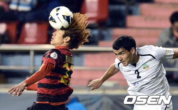 30일 오후 포항 스틸야드에서 열린 2013 아시아축구연맹(AFC) 챔피언스리그 G조 6차전 포항 스틸러스와 분요드코르의 경기, 전반 포항노병준이 공중볼을 따내고 있다.
