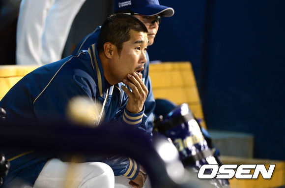 30일 오후 창원 마산구장에서 열린 '2013 한국야쿠르트 세븐 프로야구' NC 다이노스와 LG 트윈스의 경기, 1대0으로 뒤진 6회초 NC 이호준이 더그아웃에서 경기를 지켜보고 있다.