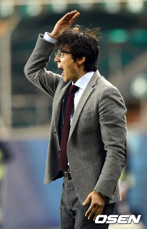 30일 오후 포항 스틸야드에서 열린 2013 아시아축구연맹(AFC) 챔피언스리그 G조 6차전 포항 스틸러스와 분요드코르의 경기, 후반 포항 황선홍 감독이 심판에게 항의하고 있다.