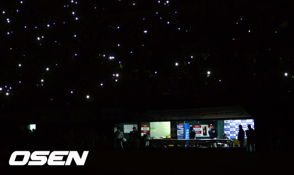 KIA가 5-3으로 앞선 채 두산의 5회말 공격이 끝난 후 클리닝타임 도중 경기는 잠실구장 전체 정전으로 인해 일순간 암흑이 되었다. 오후 8시 29분 경. 잠실구장 측은 “원인 모를 갑작스러운 정전으로 인해 경기가 지연되고 있다”라고 밝혔다.
