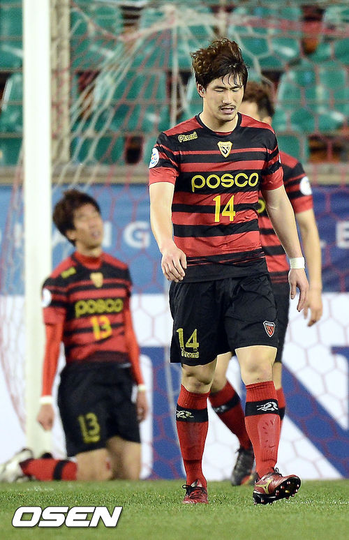 30일 오후 포항 스틸야드에서 열린 2013 아시아축구연맹(AFC) 챔피언스리그 G조 6차전 포항 스틸러스와 분요드코르의 경기, 후반 포항 선수들이 실점을 하자 아쉬운 표정을 짓고 있다.