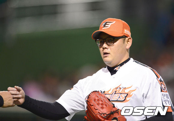 30일 오후 대전구장에서 열린 '2013 한국야쿠르트 세븐 프로야구' 한화 이글스와 롯데 자이언츠경기,8회초 2사 1,3루 실점 위기상황에서 등판한 송창식이 타자주자를 아웃처리시키며 공수교대를 하며 덕아웃을 향하고 있다.