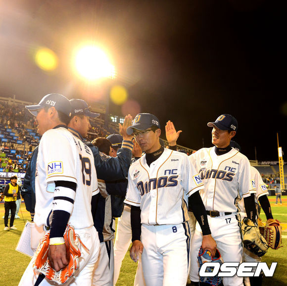 경기후 NC 선수들이 승리 하이파이브를 하고 있다./jpnews@osen.co.kr