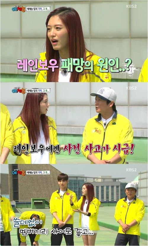 김재경은 30일 방송된 KBS 2TV 예능프로그램 ‘우리동네 예능과 체육의 능력자’(이하 ‘우리동네 예체능’) 4회에서 “내가 레인보우 패망의 원인을 분석했다”고 다소 센 발언을 시작했다.