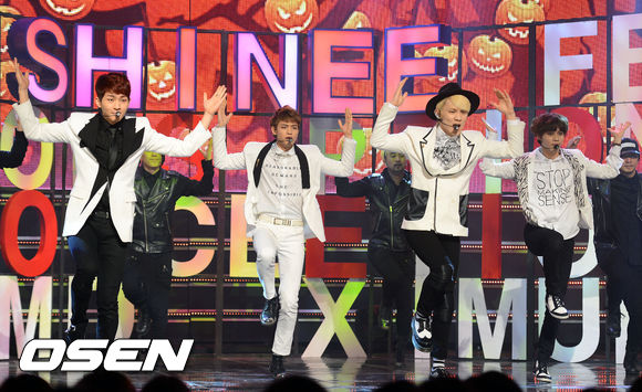 1일 서울 유니클로 악스홀에서 진행된 MBC MUSIC '쇼 챔피언'에서 샤이니가 멋진무대를 선보이고 있다.