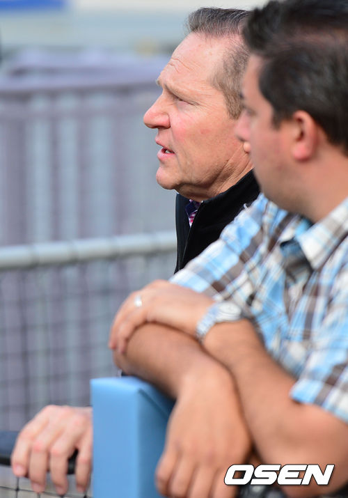 1일(이하 한국시간) 미국 캘리포니아 로스앤젤레스 다저스타디움에서 열리는 LA 다저스와 콜로라도 록키츠의 경기를 앞두고 류현진의 에이전트 스캇 보라스가 경기장을 찾아 관계자들과 대화를 나누고 있다.