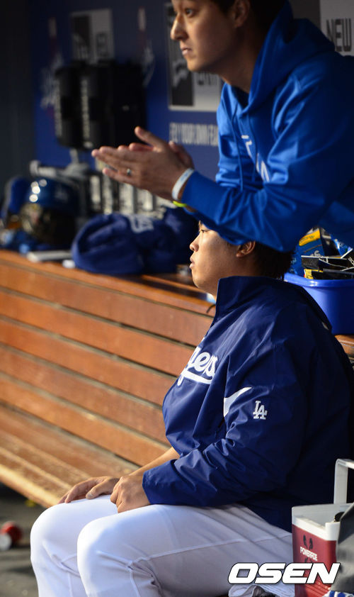1일(이하 한국시간) 미국 캘리포니아 로스앤젤레스 다저스타디움에서 열리는 LA 다저스와 콜로라도 로키스의 경기 1회말 류현진이 주먹을 쥐며 경기를 지켜보고 있다.