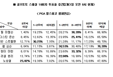 PGA 웰스파고 챔피언십 1라운드 대상 골프토토 스페셜 18회차 중간집계