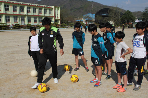 지난 30일 충주시 노은면에 위치한 노은중학교 체육시간에 충주의 김동욱, 강지백, 윤상운, 심요한이 방문해 학생들과 함께 축구클리닉을 진행했다. 선수별로 조 편성을 마친 후 각각 패스와 슈팅등에 대한 축구클리닉이 진행됐고, 학생들은 어느때보다 적극적으로 참여해 축구에 대한 열정을 보여주었다.