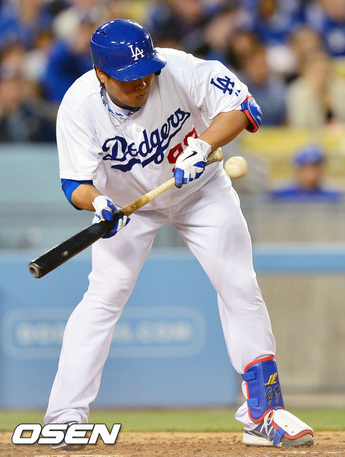 2회초 무사 주자 1,2루 LA 다저스 류현진이 타석에서 번트를 댔으나 병살로 이어지고 있다./ youngrae@osen.co.kr