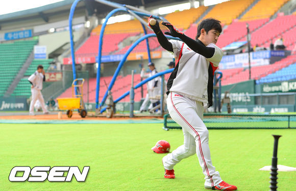 1일 오후 서울 잠실구장에서 열린 '2013 한국야쿠르트 세븐 프로야구' 두산 베어스와 KIA 타이거즈의 경기, 경기에 앞서 KIA 이용규가 특타 연습을 하고 있다