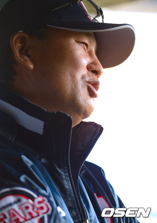 1일 오후 서울 잠실구장에서 열린 '2013 한국야쿠르트 세븐 프로야구' 두산 베어스와 KIA 타이거즈의 경기, 경기에 앞서 두산 김진욱 감독이 인터뷰를 하고 있다