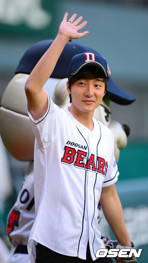 1일 오후 서울 잠실구장에서 열린 '2013 한국야쿠르트 세븐 프로야구' 두산 베어스와 KIA 타이거즈의 경기, 경기에 앞서 가수 로이킴이 시구를 위해 입장하고 있다