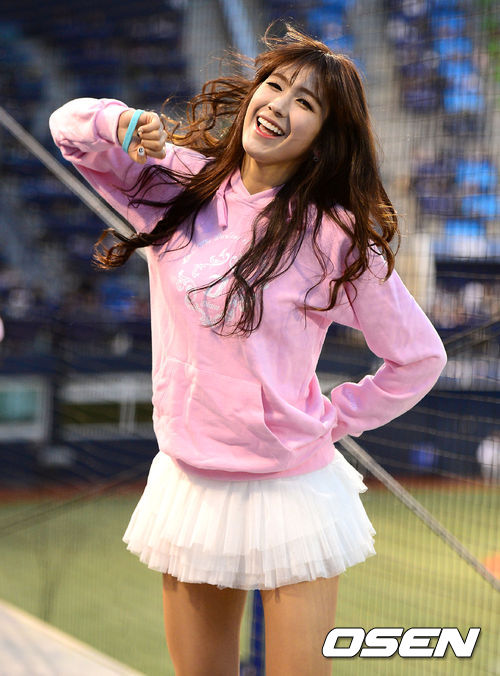 1일 오후 창원 마산구장에서 열린 '2013 한국야쿠트르 세븐 프로야구' NC 다이노스와 LG 트윈스의 경기, NC 치어리더 김연정이 열띤 응원을 선보이고 있다.