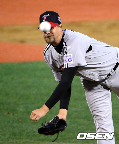 1일 오후 창원 마산구장에서 열린 '2013 한국야쿠트르 세븐 프로야구' NC 다이노스와 LG 트윈스의 경기, LG 선발 주키치가 역투하고 있다.