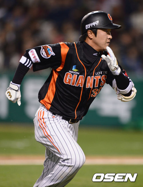 1일 오후 대전구장에서 열린 '2013 한국야쿠르트 세븐 프로야구' 한화 이글스와 롯데 자이언츠경기, 4회초 1사 1루 정훈 1타점 적시타를 날리고 2루까지 진루하고 있다.