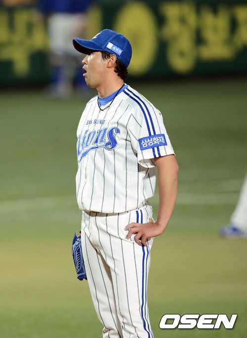 1일 오후 대구구장에서 열린 '2013 한국야쿠르트 세븐 프로야구' 삼성 라이온즈와 넥센 히어로즈의 경기 7회초 2사 2,3루 삼성 장원삼이 넥센 이택근에세 3점 홈런을 허용한 뒤 아쉬운 표정을 짓고 있다.