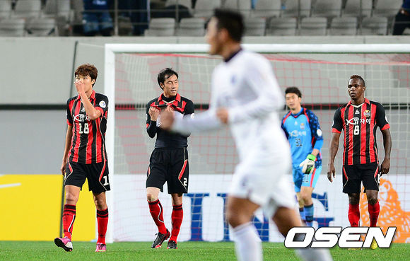 1일 오후 서울월드컵경기장에서 열린 2013 아시아축구연맹(AFC) 챔피언스리그 조별예선 E조 6차전 FC 서울과 부리람 유나이티드(태국)의 경기, 후반 부리람 티라톤 분마탄의 동점골 때 서울 선수들이 아쉬운 표정을 짓고 있다.