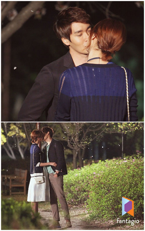 사진 속에는 정겨운과 유인영이 벚꽃 잎이 흩날리는 선유도 공원에서 완벽한 비주얼을 자랑하며 로맨틱한 키스를 나누는 모습이 담겼다. 드라마 속 그 어떤 커플보다도 훈훈한 기럭지와 비주얼을 뽐내며 알콩달콩한 커플로 호흡을 맞추고 있는 두 사람의 키스신에 촬영장에 있던 스태프들도 숨을 죽이고 시선을 떼지 못했다는 후문.