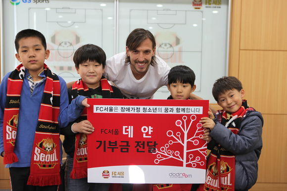지난 시즌 2년 연속 득점왕은 물론 MVP까지 거머쥐며 K리그의 역사를 다시 쓰고 있는 FC 서울의 공격수 데얀이 MVP다운 멋진 선행으로 사랑을 전했다.