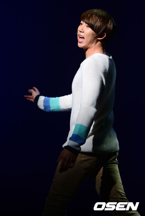 2일 오후 서울 능동 유니버설아트센터에서 열린 뮤지컬 '남자가 사랑할 때' 프레스콜에서 그룹 유키스 훈이 연기를 펼치고 있다.
