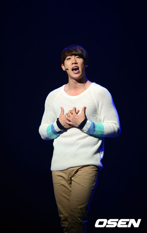 2일 오후 서울 능동 유니버설아트센터에서 열린 뮤지컬 '남자가 사랑할 때' 프레스콜에서 그룹 유키스 훈이 연기를 펼치고 있다.